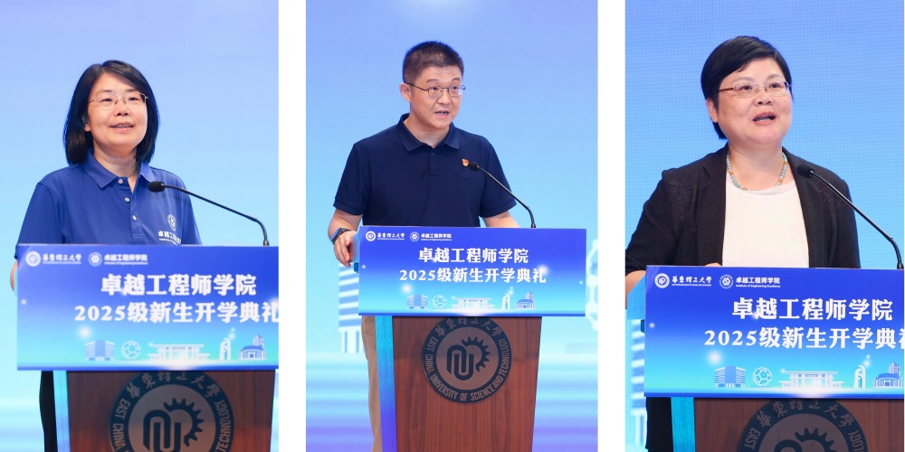9月28日,卓越工程师学院2025级新生开学典礼在徐汇校区隆重举行。校党委常委、副校长王慧锋,发展规划处处长赵玲,研究生院副院长兼党委研究生工作部部长孙洪锋,卓越工程师学院党委书记兼常务副院长张雪芹,化学与分子工程学院、生物工程学院、药学院、材料科学与工程学院、信息科学与工程学院、机械与动力工程学院相关负责人与导师代表,来自上海电气集团、上海医药集团、中国化学工程集团、中国石油天然气集团、中国医药集团、中国铁路工程集团、中国航空发动机集团、中国海洋石油集团、长三角国家技术创新中心、安徽高等研究院、国家能源集团、临港国家实验室等12家联培企业代表,以及2025级工程硕博士等250余人参加典礼。典礼由卓越工程师学院副院长征春秀主持。