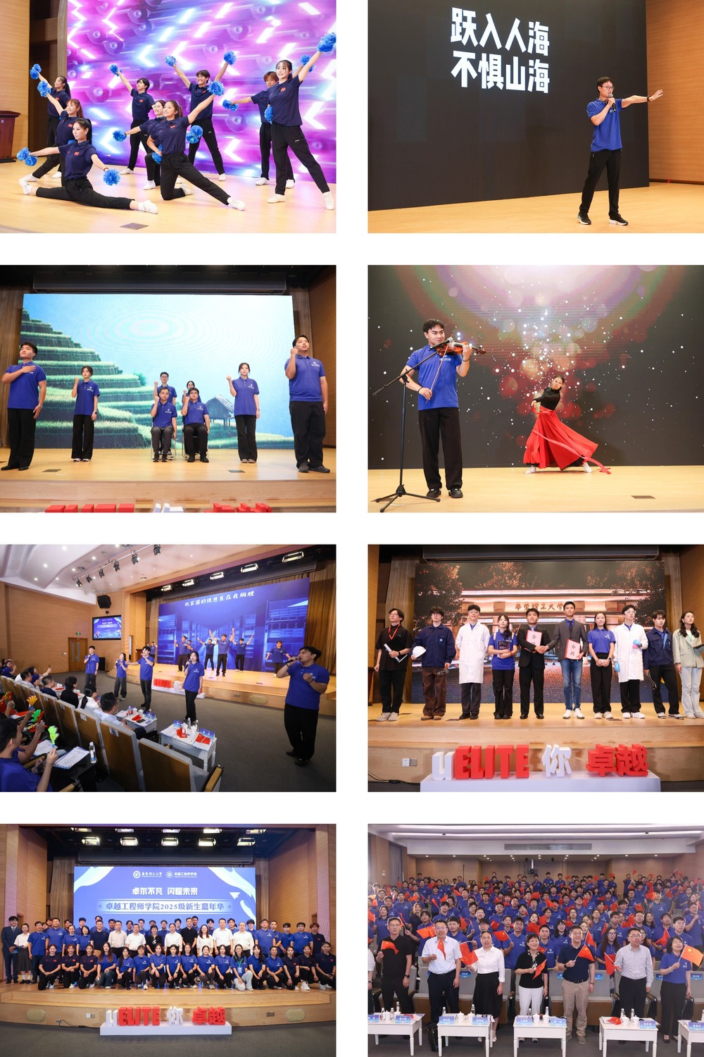 开学典礼结束后,“卓尔不凡,闪耀未来”迎新嘉年华活动拉开序幕。活动分为“卓越启航 青春向党”“工程报国 使命担当”“闪耀未来 强国有我”三个篇章,健美操、工装秀、小提琴独奏、男生独唱、表演秀......同学们自编自导自演的节目精彩纷呈,充分展现了卓工学子多元的艺术风采与昂扬的精神面貌。活动在全场大合唱《我和我的祖国》中圆满结束,歌声表达了全体师生对祖国繁荣昌盛的深切希望与美好祝福。