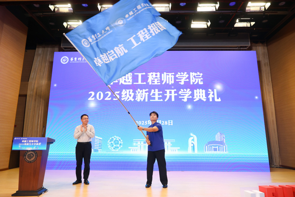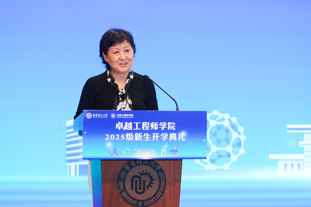 典礼在庄严的国歌声中拉开帷幕。王慧锋在致辞中向新生表示热烈欢迎,并向联培企业致以诚挚感谢。她指出,卓越工程师学院是学校响应国家“培养大批卓越工程师”战略部署的重要举措。学院将通过“校企双导师制”培养模式,让学生在真实场景中参与实践项目,锤炼解决复杂工程问题的能力,真正实现“把论文写在祖国大地上”。她对新生提出三点期望:一要心怀家国,传承华理人工程报国传统;二要砥砺奋进,在实践探索中锤炼过硬本领;三要深入产线,培养跨界融合能力。希望同学们以卓越工程师为目标,在服务国家战略的征程中书写青春华章。
