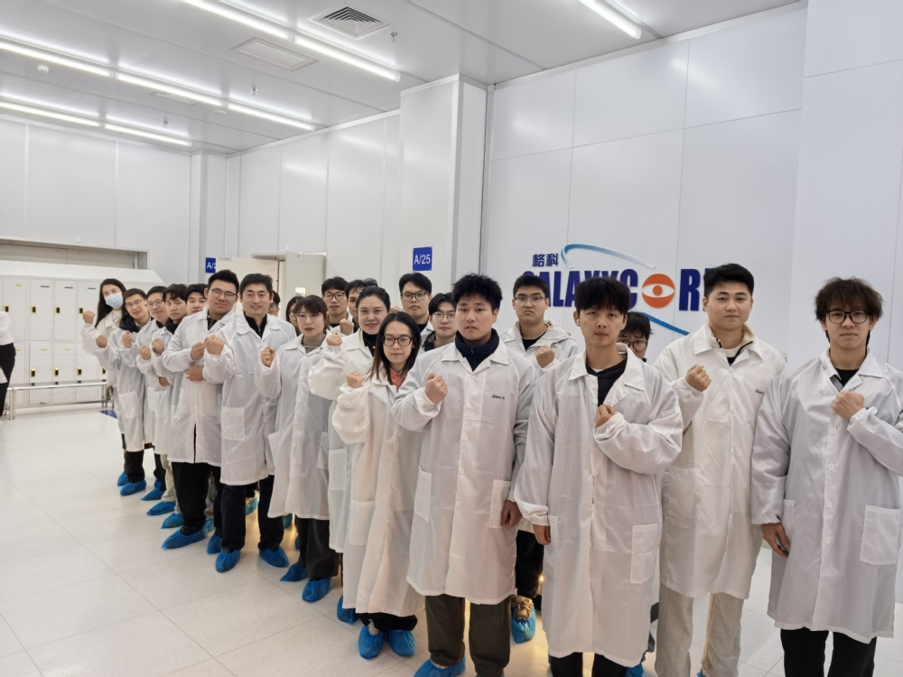 师生们还参观了格科全自动产线和展厅,通过近距离观察晶圆加工、光刻等关键环节,直观了解半导体制造的全流程技术,详细了解格科半导体在图像传感器、显示驱动和窄边框技术等方面的技术创新。